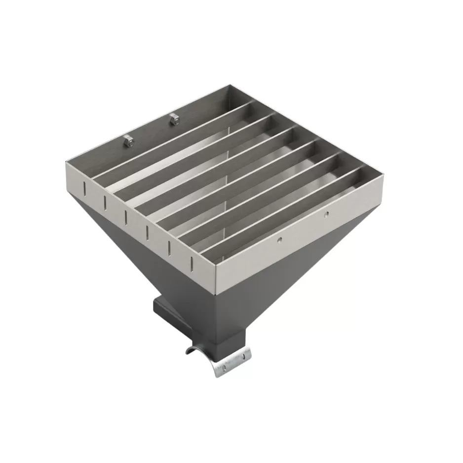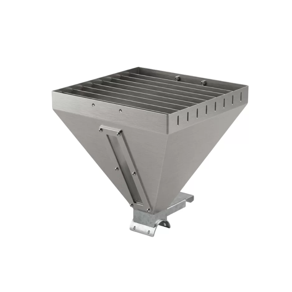 Para produtos alimentícios é recomendado o uso deste componente em Aço Inoxidável devido a resistência a corrosão para que as exigências de agências reguladoras sejam atendidas. A moega é dotada de nível em policarbonato.