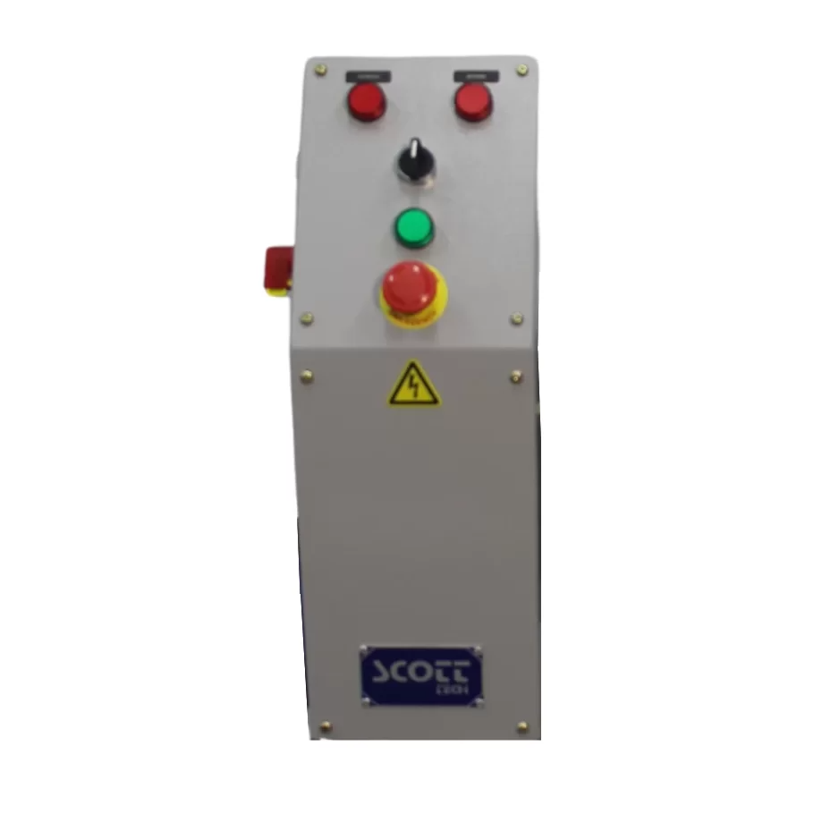 Todo equipamento produzido pela Scottech é fornecido com um painel de comando completo. O painel de comando padrão é composto por Chave Geral, Chave Seletora de Sentido de Giro da Rosca Extratora, Botão de Emergência, Lâmpadas Sinalizadoras padrão NR12, Contatores de Partida, Amperímetro para monitoramento de carga e proteção contra sobre carga no motor principal.