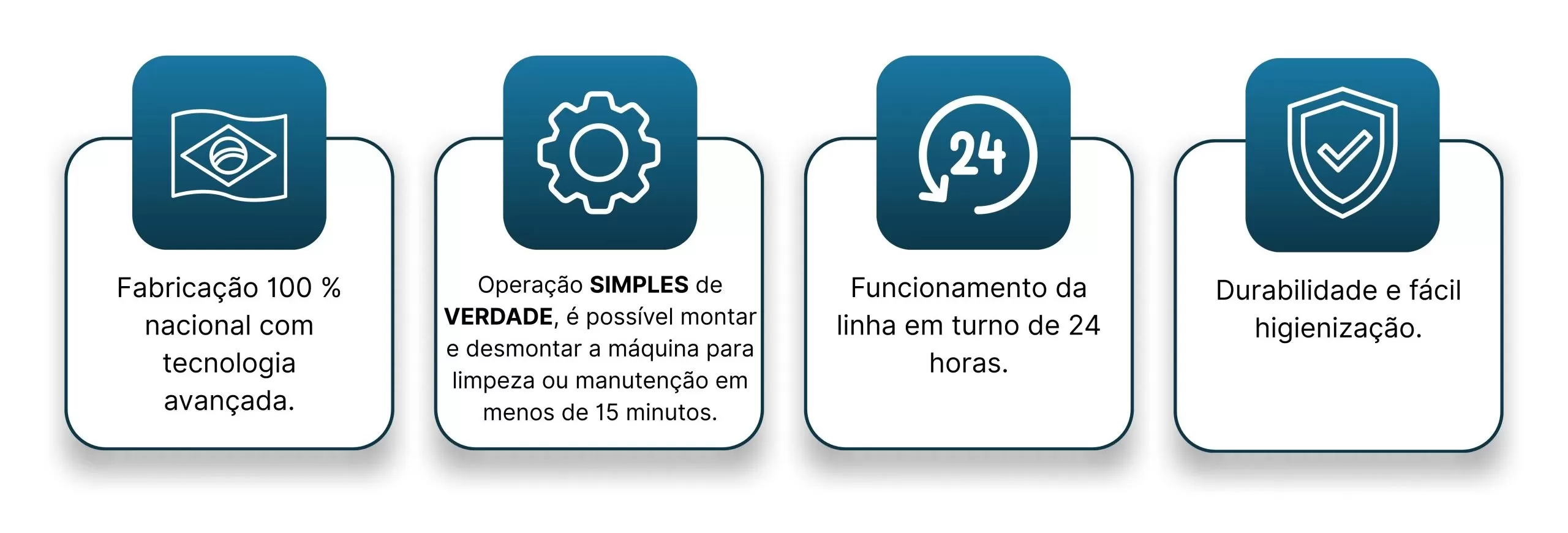 A operação das nossas máquinas são muito simples e não demandam de mão de obra qualificada e de alto custo.